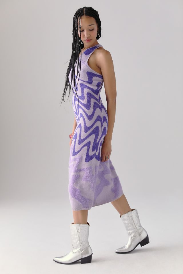 Retailing at just under 140 the knit nylon viscose midi features an abstract lily pad. Image courtesy of House of Sunny. Its an exact copy of House of Sunnys viral Hockney dress only being sold for less than half the price.